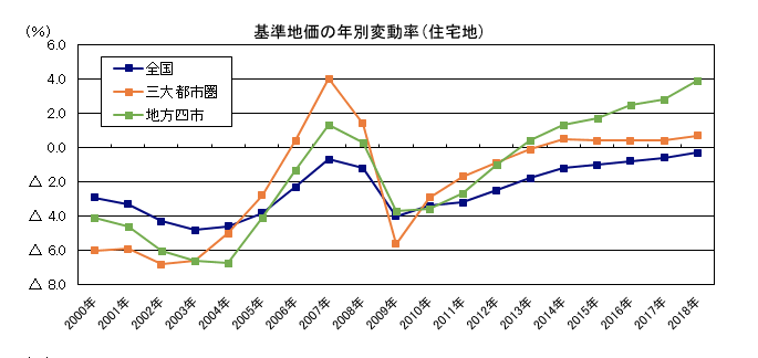 According to the government announcement, the national average standard price of land (基準地価) published in September 2018