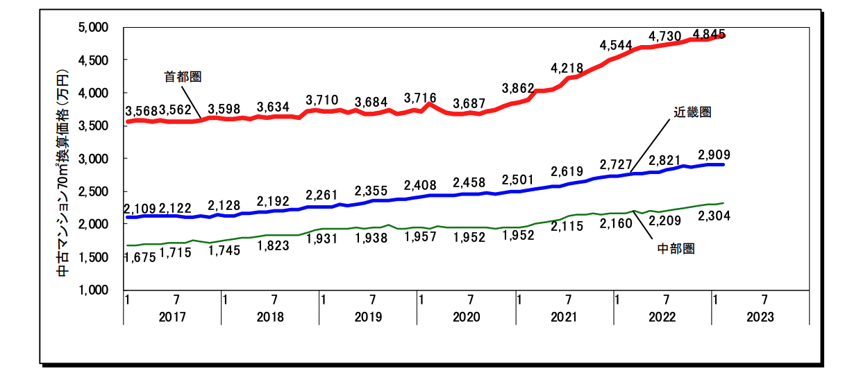 Major Cities in the Three Major Metropolitan Areas: Monthly Trends in Used Condominium Prices (70 sqm)