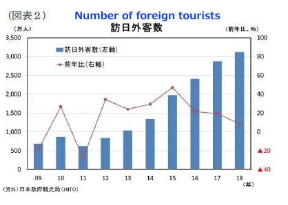 On a yearly basis, the number of foreign tourists visiting Japan surpassed 30 million in 2018.