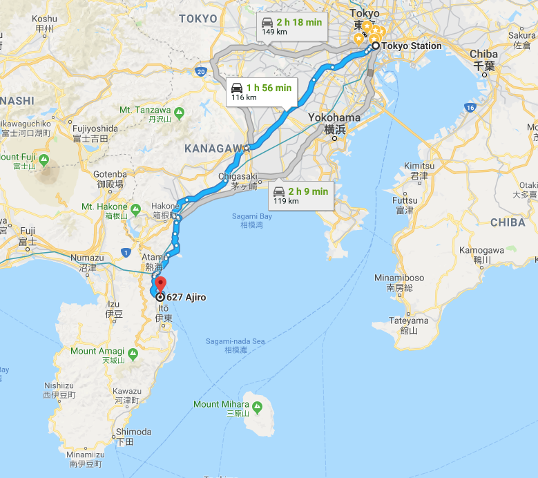 (Map from Tokyo to Kamogawa city)