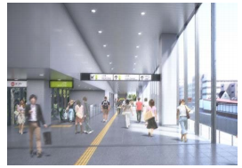 (Artist impression of new concourse of Harajuku station by JR East)