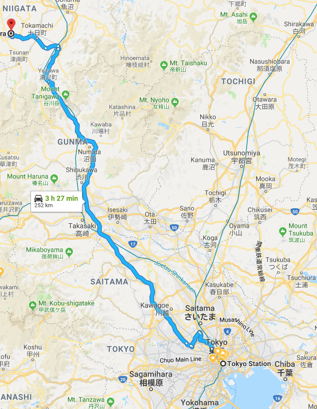 If you take Niigata shinkansen(bullet train) from Tokyo station, it takes only 80 mins to Echigo-yuzawa station.
