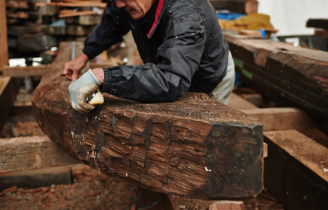 Process 2 : Sawing up logs and fine-tuning by the craft-man with special skills