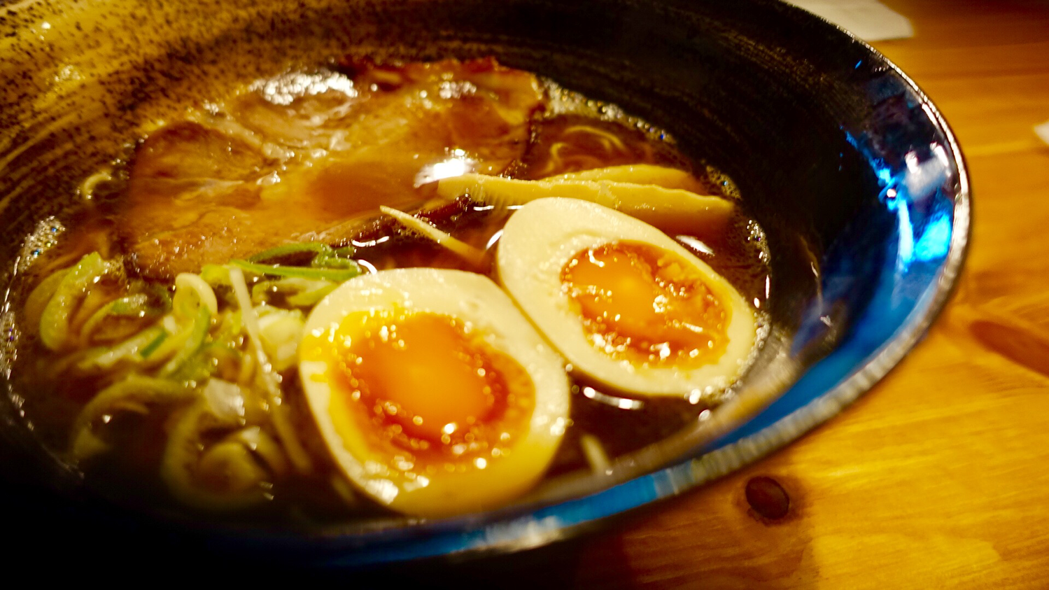 A bowl of thin curly noodles and soy-based broth. Ramen broth is typically made by placing the base (kaeshi) in a bowl and dissolving it with the hot broth; but for Takayama Ramen, the broth and the base are boiled together. The taste and ingredients vary depending on the shop, so you should try different ones and compare them.