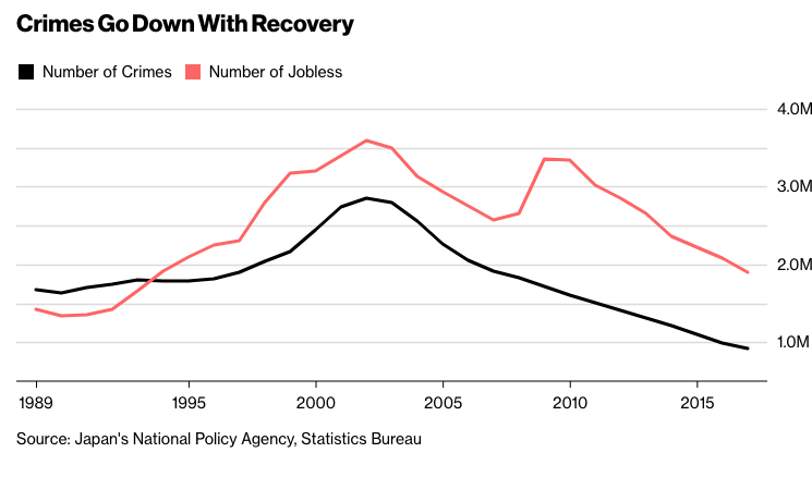 As you can see, number of crime in general is Japan also has been decreasing in very healthy manner over the years.