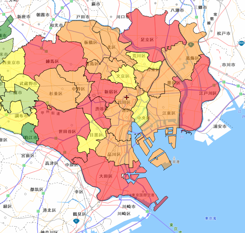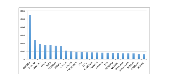 Likewise, Chuo :5 times, Shibuya : 2.5 time, Shinjuku: 2.3 times.